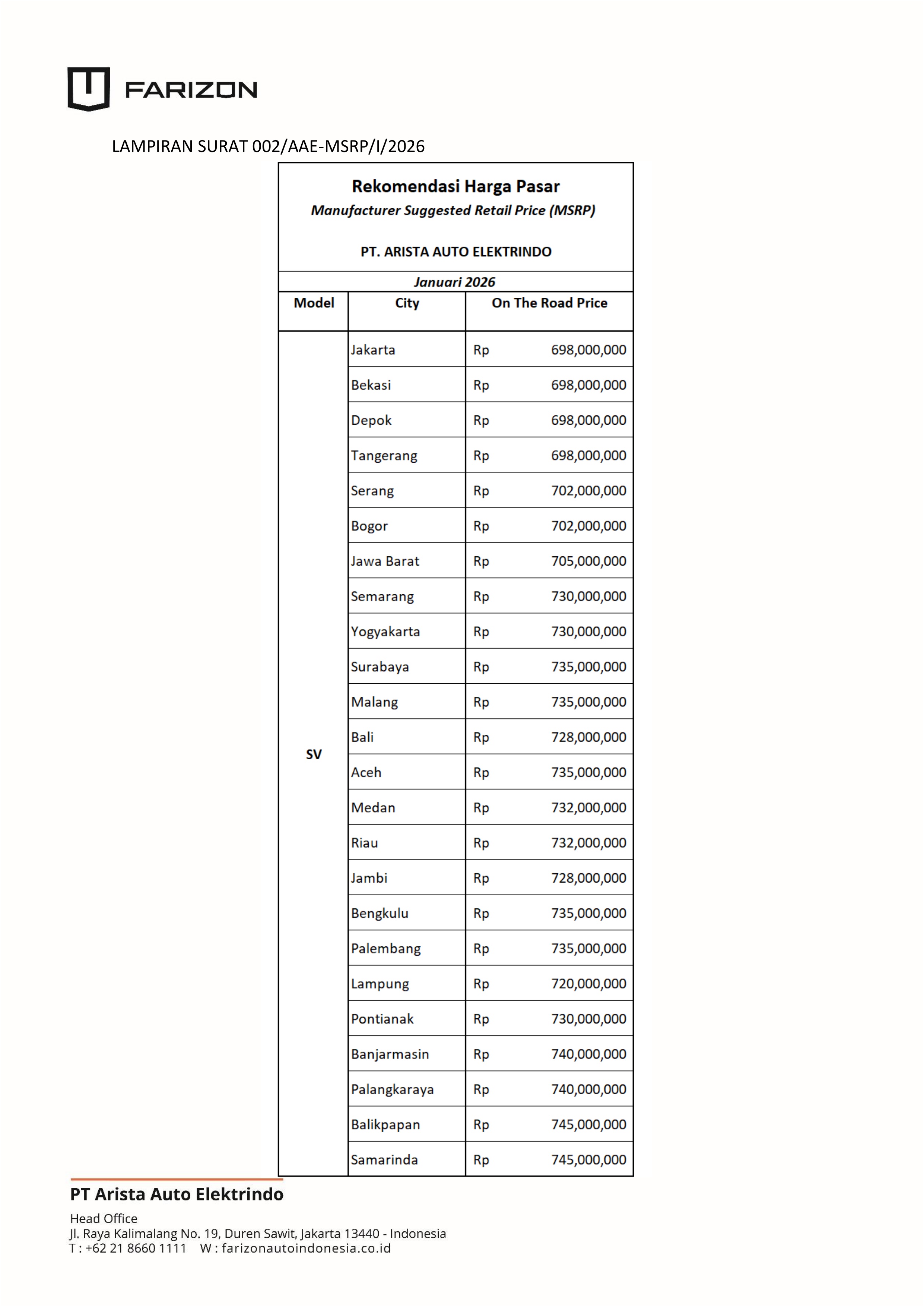 ARISTA Group melalui PT Arista Auto Elektrindo, secara resmi memperkenalkan Farizon dan produk perdananya kepada publik melalui acara Grand Launching,
